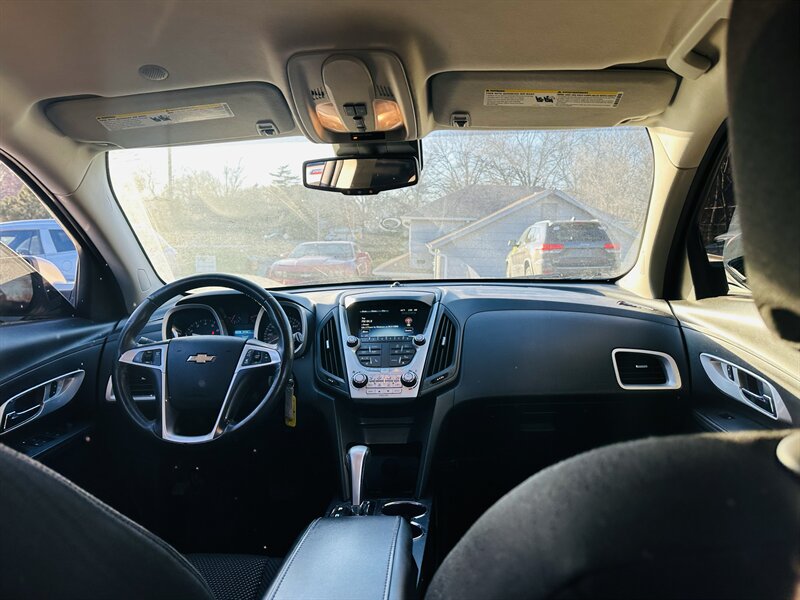 2013 Chevrolet Equinox LT finished in Summit White with a Light Titanium/Jet Black interior. Powered by the factory 2.4L I4 (182 hp, 172 lb-ft) mated to a six-speed automatic, it returns an EPA-rated 22 mpg city and 32 mpg highway. Factory equipment includes power windows, locks and mirrors, remote keyless entry, cruise control, tilt/telescoping steering wheel with mounted audio/cruise controls, cloth seating with 60/40 split-folding rear seat, air conditioning, AM/FM/CD audio with auxiliary and USB inputs and six speakers, Bluetooth hands-free/streaming, and OnStar capability. Standard safety and convenience features include ABS, traction and stability control, front and side-impact airbags with head curtain airbags, LATCH child-seat anchors, and tire pressure monitoring. This vehicle is in excellent overall condition.
