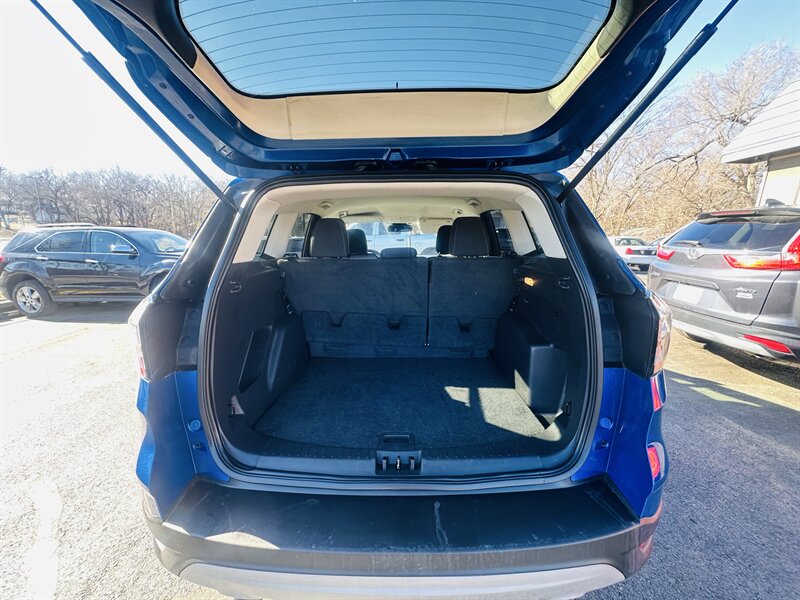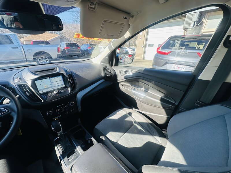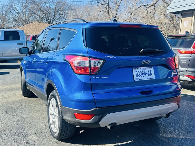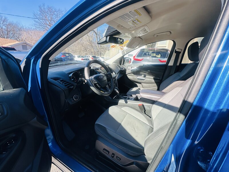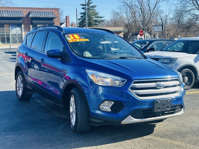 Meet your next smart move: a Blue 2018 Ford Escape SE with a Medium Light Stone interior, powered by the peppy EcoBoost 1.5L Turbo I4 (179 hp, 177 ft-lb) — 23 MPG city, 30 MPG highway, and in excellent overall condition. Factory-equipped with a full safety suite (rearview camera, ABS, traction and stability control, multi-stage airbags, tire pressure monitoring), convenient comforts (air conditioning, power windows/locks, cruise control, tilt/telescoping wheel, steering-wheel audio controls, keyless entry) and practical touches (cloth seating for five, 17" alloy wheels, roof rails). Tech? An intuitive infotainment system with Bluetooth, USB and voice control for seamless calls and tunes. Cute, efficient, and ready to impress — go on, take it home.